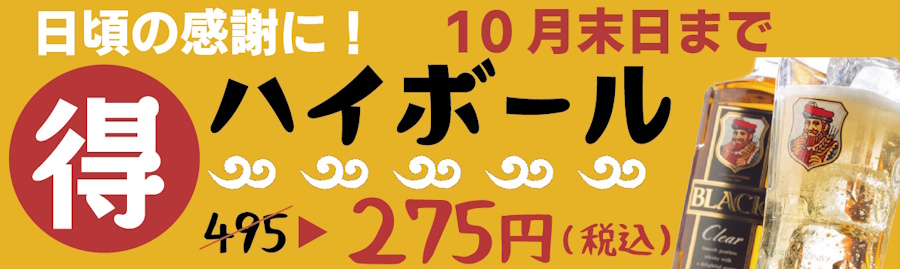 ~10月末日まで【何杯でも】ハイボールが超お得!