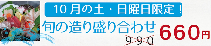 10月の土・日曜日・祝日限定!旬の造り盛り合わせがお得!